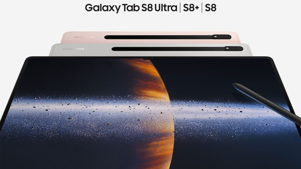 Τη νέα σειρά Samsung Galaxy Tab S8, που περιλαμβάνει τα Galaxy Tab S8 και S8+, ενώ για πρώτη φορά παρουσιάζει το Samsung Galaxy Tab S8 Ultra με μεγαλύτερη οθόνη και την πιο ισχυρή απόδοση που έχει προσφέρει ποτέ η σειρά Samsung Galaxy Tab S. Το εξελιγμένο υλικό, οι κορυφαίες δυνατότητες παραγωγικότητας και το απρόσκοπτο οικοσύστημα στο οποίο βασίζονται οι χρήστες του Samsung Galaxy συνδυάζονται σε μία ενιαία φορητή συσκευή δυναμικής ισχύος, σχεδιασμένης να συντροφεύει το χρήστη σε ένα διαρκώς συνδεδεμένο κόσμο.