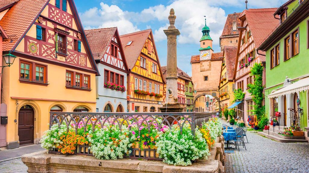 Θα το λατρέψετε για την έντονα ρομαντική του ατμόσφαιρα και τον μεσαιωνικό χαρακτήρα του, που παραμένει αναλλοίωτος μέχρι και σήμερα. Βρίσκεται 104 χιλιόμετρα μακριά από τη Νυρεμβέργη, σε ένα οροπέδιο πάνω από τον ποταμό Tauber και οφείλει το όνομά του στο κόκκινο χρώμα (Rot) που έχουν οι στέγες των σπιτιών του. Αν ταξιδέψετε ως εκεί οδικώς, επιβάλλεται να ακολουθήσετε την πανέμορφη Romantische Strasse με τα βασιλικά ανάκτορα και τα υπέροχα τοπία. Φθάνοντας στο κέντρο του χωριού δε θα ξέρετε τι να πρωτοκοιτάξετε! Θαυμάστε τα καλοδιατηρημένα ξύλινα σπίτια του και τον γοτθικό ναό του, περπατήστε στα πεντακάθαρα πλακόστρωτα στενά του, χαζέψτε τις βιτρίνες των μαγαζιών και ανεβείτε σε κάποιο από τα αμαξίδια που πηγαίνουν βόλτα τους τουρίστες. Τα τοπία είναι πολύ πιθανό να σας φανούν οικεία, μιας και αυτό το γοητευτικό χωριό έχει προσελκύσει παραγωγούς ταινιών, όπως ο Πινόκιο του Walt Disney και ο Χάρι Πότερ και οι Κλήροι του Θανάτου.